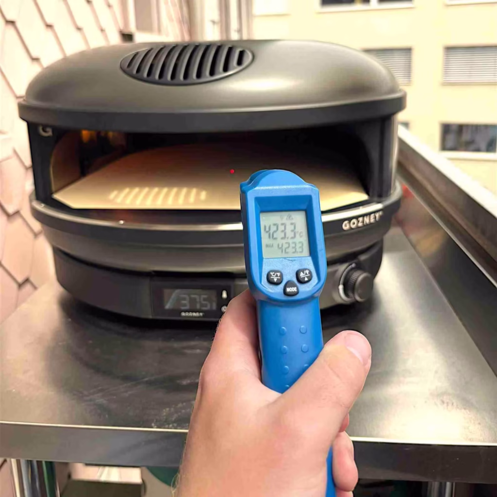 Gozney macht nach seinem Start mit dem «hässlichen Entlein» Roccbox mit ästhetisch sehr ansprechenden Öfen wie dem Dome oder dem Gozney Arc bzw. Arc XL von sich reden. Was der Arc XL in der Praxis kann, liest du hier. Vor dem Test Wir konnten den Gozney Arc XL ungebraucht aus zweiter Hand erwerben – lediglich der Brenner wurde bereits einmal getestet. Was uns bei der Abholung sofort auffiel, war, dass der Gozney Arc XL, obwohl ungebraucht, komplett verrusst war, man machte sich also leider schnell Hände und Kleider dreckig. Was wir nun also schon Mal wissen, ist, dass der Gozney Arc XL selbst bei einem kurzen anlassen des Brenners eine extreme Menge Russ absondert welche andere Öfen, wie ein Pizzaparty Ardore, in jahrelangem Betrieb nicht hinbekommen. Beunruhigend wenn man bedenkt, dass Russ gemäss der Schweizerischen Krebsliga nachweislich krebserregend ist. Um uns von dem Krebsgedanken abzulenken wollten wir uns möglichst schnell ans Pizza backen machen – da dem uns mitgelieferten Druckregler aber eine Dichtung fehlte, galt es zuerst diese zu organisieren. Wir nehmen an, dieser Missstand lag lediglich am Vorbesitzer und hoffen, die CH-Importeure halten sich die geltenden Gesetze und Verordnungen betreffend Gasgeräte, weshalb wir dies dem Gozney Arc XL nicht negativ anhaften möchten. Aufheiztest Der Gozney Arc XL braucht Propangas wie jeder andere Gasgrill & Gas-Pizzaofen auch. Der Brenner zündet sehr zuverlässig mit dem eingebauten Batteriezünder, welcher das Anzünden zum Kinderspiel macht. Neben dem automatischen Zünder ist auch ein Thermometer miteingebaut. Mal schauen was dieses nach 15 Minuten aufheizen auf voller Leistung meint. Während das eingebaute Thermometer nach 15 Minuten lediglich 255° erreichte, kam unser Infrarotthermometer bereits auf 350-360°. Die Differenz war so gross, dass wir sogar an unserem Infrarotthermometer zu Zweifeln begannen und den eingestellten Abstrahlwert überprüften – dieser war jedoch auf den korrekten 0.95 für Stein eingestellt. Infrarotthermometer für Pizzaofen Jetzt kaufen Weitere 15 Minuten später näherten sich die Werte des externen Thermometers und des Ofens an. Nach 30 Minuten haben wir also lediglich 423.3° auf dem Stein, was wohl an der sehr grossen Frontöffnung liegen dürfte, welche im Gegenzug ein legendär gutes Backfläche zu Ofenbreite Verhältnis bietet was in der Praxis sowieso wichtiger sein dürfte als eine um fünf Minuten kürzere Aufheizzeit. Nach ungefähr 40 Minuten bietet sich folgendes Bild Während der Gozney Arc XL nach 40 Minuten Aufheizen ready für seine erste Pizza ist, muss man leider auch feststellen, dass die Russeskalation selbst auf dem schwarzen Ofen in obigem Bild in der rechten oberen Ecke bereits jetzt zu erkennen ist (Sieht aus wie ein Schatten, nur färbt dieser Schatten halt ab). Gozney argumentiert, die unvollständige Verbrennung des Gases sei gewollt, da so ein schöner Flammenüberwurf (Gozney Marketingsprech = Rolling Flame) erreicht werde, welcher eine gleichmässigere Hitzeverteilung ermögliche. Die Hitzeverteilung Links-Rechts ist tatsächlich gut, besser als beispielsweise bei den von uns getesteten Ooni Modellen. Im Vergleich zu einem Pizzaparty Ardore ist jedoch keine Verbesserung erkennbar – der Ardore setzt anstelle schlechter Verbrennung auf einen höher platzierten Brenner und eine rundere Kuppelform. Die grössten Temperaturunterschiede gibt es unserer Erfahrung nach sowieso von hinten nach vorne zur Öffnung hin und das ist auch beim Arc XL – trotz jeder Menge Russ – nicht anders. Backtest Wie immer testen wir auch den Gozney Arc XL mit einer Margherita. Den Teig dazu haben wir mit dem Verace Napulé Mehl nach folgendem Rezept in unserer Sunmix zwei Tage zuvor vorbereitet. Pizzamehl Verace Napulé 1 kg Jetzt kaufen San Marzano Bio La Carmela 400G Jetzt kaufen Fior di Latte 1 kg Jetzt kaufen Die Pizza liess sich aufgrund der schön grossen Backfläche und natürlich dank unserer Profi-Drehschaufel hervorragend wenden. Das Resultat konnte sich sehen lassen. Bambus Pizzabrett Jetzt kaufen Pizzawiegemesser Edelstahl mit Holzgriff 35 cm Jetzt kaufen Als «Biscotto-Trottel» beachteten wir natürlich mal wieder nicht, die Temperatur für den Cordierit Stein runterzuschrauben und backten bei effektiv minim über 500°, was etwas zu viel für diesen Stein ist. Der Gozney Arc XL ist sogar so nett und warnt direkt bei Temperaturen über 480° womit auch Biscottonutzer es schaffen sollten mit der korrekten Steintemperatur zu backen. Um dem Cordierit auch noch eine faire Chance mit passenden Temperaturen zu bieten, gab es nach einer Reinigung der Backfläche mit unserer Ofenbürste natürlich noch weitere Pizzen bei ca. 450 Grad. Pizzaofenbürste Messing Jetzt kaufen Mit dem Gozney Arc XL lassen sich also trotz Cordierit Stein gute Resultate erzielen, wenn man sich etwas Mühe gibt. Die nötige «tiefe» Steintemperatur erfordert entweder, die Pizza länger mit der Drehschaufel an der Flamme zu halten oder die Brennerleistung etwas zu erhöhen. Da der Drehregler vorne am Gerät sitzt, ist das kaum Aufwand – im Gegensatz zum Pizzaparty Ardore oder Ooni Öfen, dessen Regler hinten liegen. Dort braucht man ihn dank des Biscotto-Steins aber etwas seltener. Pizza Auskühlgitter Jetzt kaufen Arbeitsplatte Lucente Jetzt kaufen Fazit Der Gozney Arc XL ist ein wunderschöner und aufgrund seiner im Verhältnis zur Backfläche geringen Grösse auch ein praktischer Ofen. Trotz billigem Cordierit Stein lassen sich mit wenig Zusatzaufwand sehr gute Pizzen backen. Nach unserer Erfahrung ist der Gozney Arc XL der bisher beste in China hergestellte Pizzaofen, den wir getestet haben. Gozneys grösste Stärke ist aber gleichzeitig auch die grösste Schwäche. Professionelle Pizzaöfen wurden optisch und befeuerungstechnisch so gut kopiert, dass ein Arc XL mehr Russ in die Umgebung schleudert als sämtliche grossen Gas und Holz Gastroöfen die wir bisher benutzt haben. Abgase die w