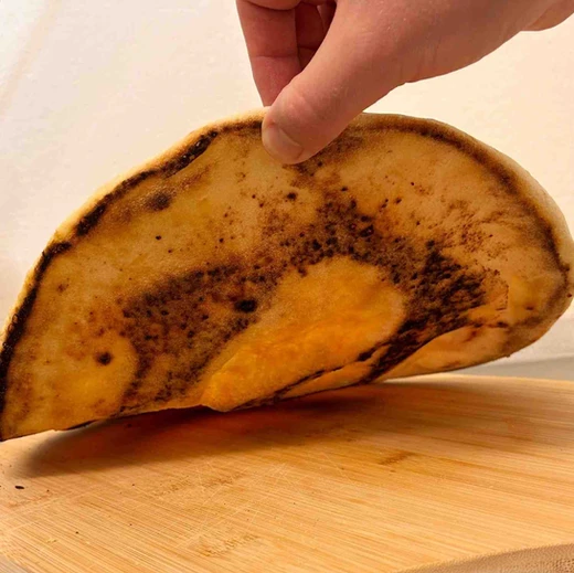 Die erste Pizza aus dem Volt 2 ist trotz langem unter das Heizelement halten eine grosse Enttäuschung.