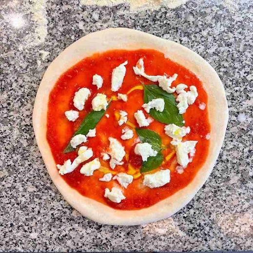 Pizza mit Büffelmozzarella vor dem Pizzaparty Ardore