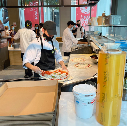 Ganz zu Beginn unserer Reise besuchten wir die Expo 2020 und machten uns dort auf die Suche nach einer guten Pizza. Die Suche war alles andere als schwer – direkt Links nach dem Al Wasl Dome – der Eingangs- und Hauptkuppel der Expo 2020 fand sich eine Filiale von Ecco Pizza e Pasta. Die temporäre Expo Filiale war mit Elektroöfen der neusten Generation (Scugnizzo Napoletano, zugelassen von der AVPN) ausgestattet aber seht selbst: