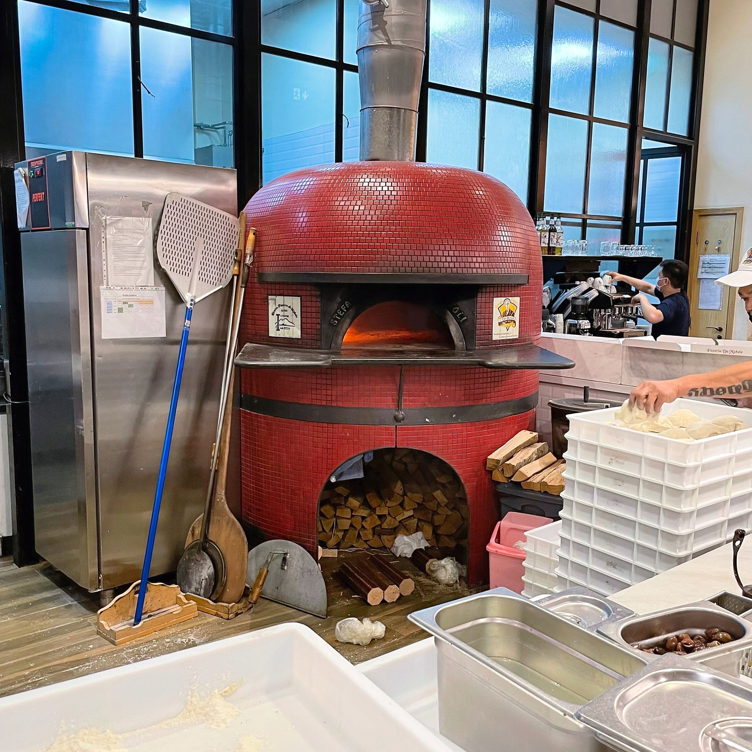 Ausgestattet ist diese Filiale am City Walk mit einem Buchenholzofen von Stefano Ferrara welcher als einer der besten Ofenbauer in Neapel gilt.