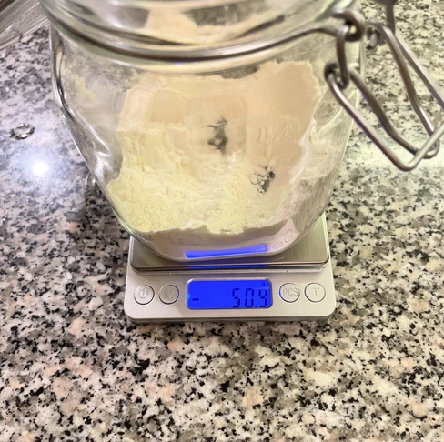 Zuerst setzte ich ca. 40 Stunden vor dem eigentlichen Pizza backen einen Vorteig an, dazu verwendete ich ca. 60 Gramm Sauerteigkultur.