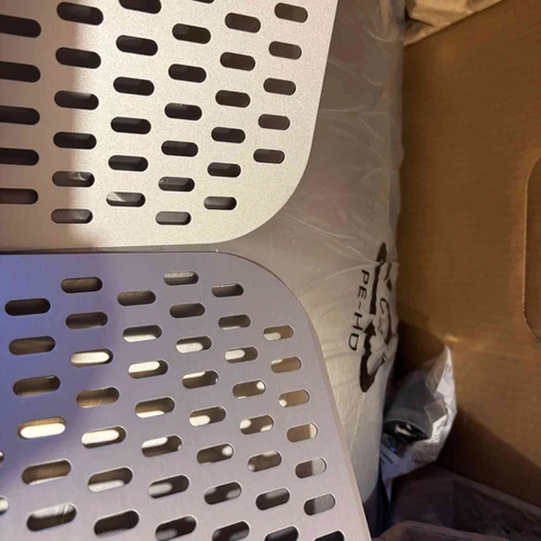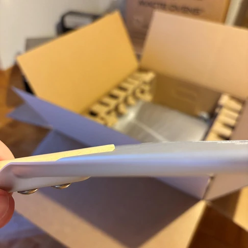 Direkt nach dem Öffnen des Kartons sticht einem ein Schaufelgriff und der Karton des Cordierit Stein ins Auge.