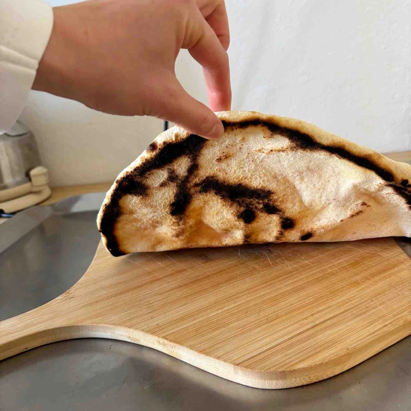 Da die mitgelieferte Unold Schaufel einen brauchbaren Eindruck machte, benutzten wir selbstverständlich diese. Trotz den zuvor erwähnten Macken würde sich ein Upgrade auf unsere 30-cm Schaufel unserer Ansicht nach nicht lohnen, denn auch mit der Unold Schaufel bringt man die Pizza heil in den Ofen.
