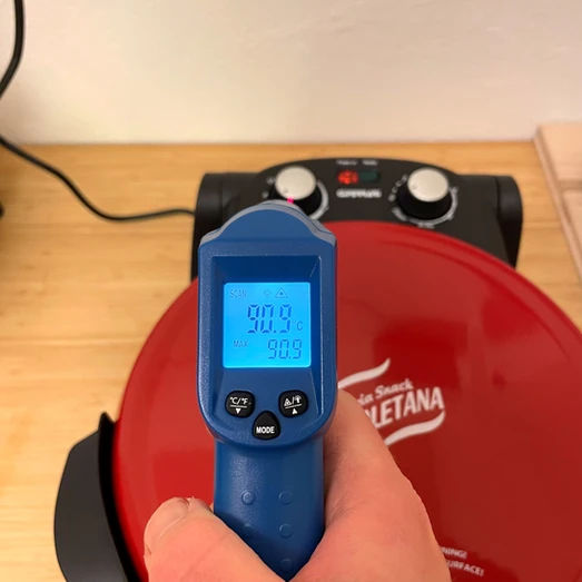 Als erstes kommt der G3 Ferrari Napoletana zum Temperaturtest. Er erreicht lediglich 318°C und spielt somit schon eher in der Liga der Haushaltsbacköfen. Dafür werden die Bedienelemente schön warm aber dieses Problem hat der Delizia im kleineren Ausmass auch.