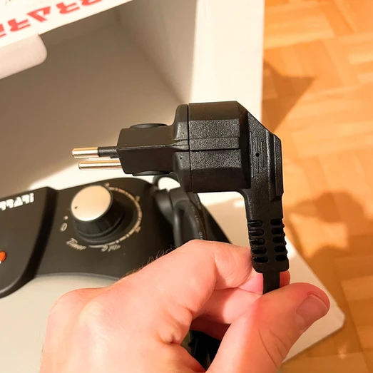 Zum Pizza backen müssen die beiden im oberen Bildrand sichtbaren Abstandhalter nach unten geklappt werden (Sie sind Teil der Sandwichfunktion). Egal ob mit oder ohne Abstandhalter, der Napoletana war beide Male weniger heiss als der Delizia.