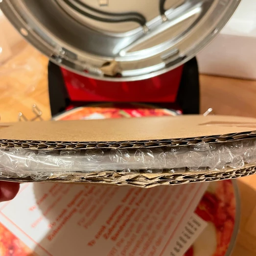 Geliefert werden beide Öfen in kompakten Kartonschachteln, welche vollmundig Backtemperaturen von bis zu 400° Celsius versprechen. Mit dabei sind ausserdem bei beiden Öfen so etwas wie Pizzaschaufeln welche aber das gleiche Problem haben wie jene des Ariete Pizzaofen. Im Vergleich zum Ariete sind die Schaufeln bei den G3 Ferrari Öfen aber immerhin aus Aluminium und verbiegen sich nicht sofort. Beim G3 Ferrari Snack Napoletana wird zusätzlich noch ein zweiter Cordierit Stein für den Deckel mitgeliefert, damit man den Pizzaofen auch als Sandwichtoaster zwecksmissbrauchen kann.